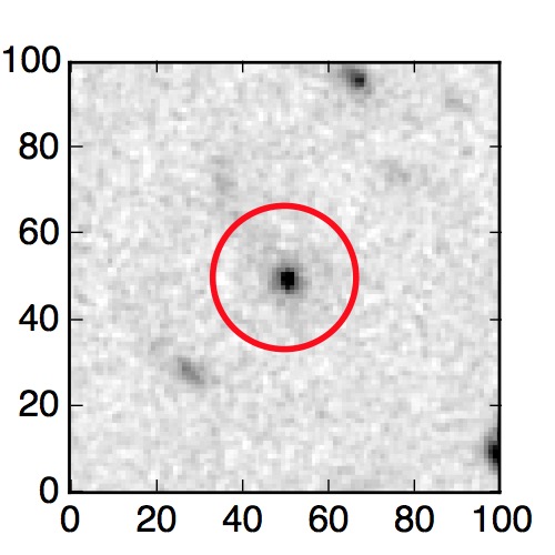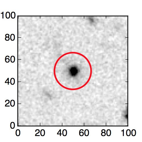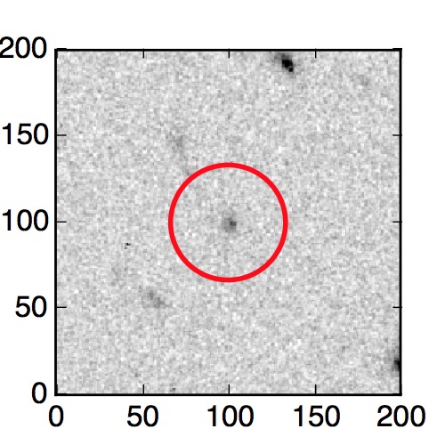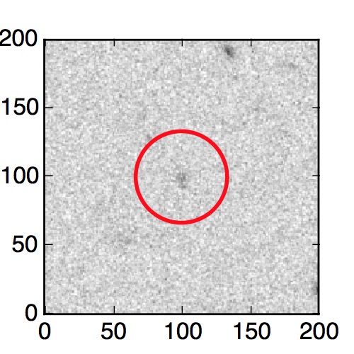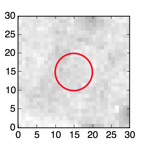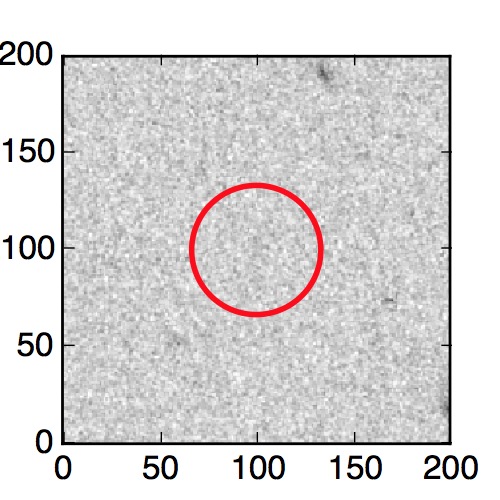 The red circle in the various panels is 1" in radius. The images are 6"x6".