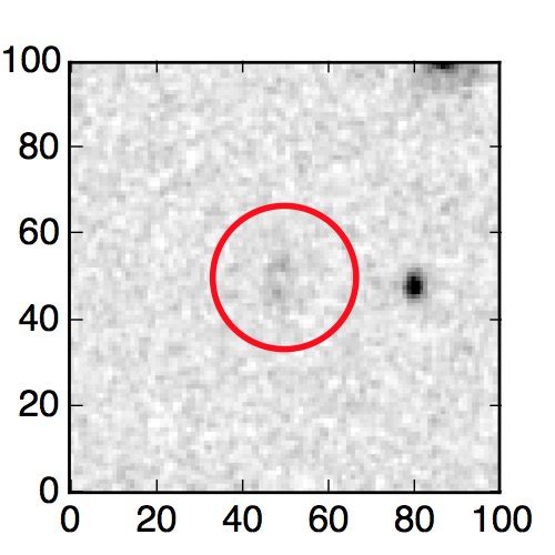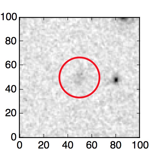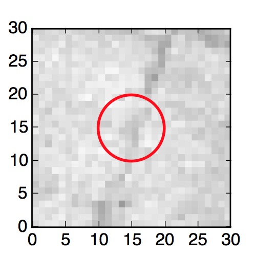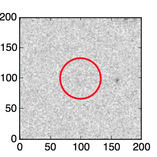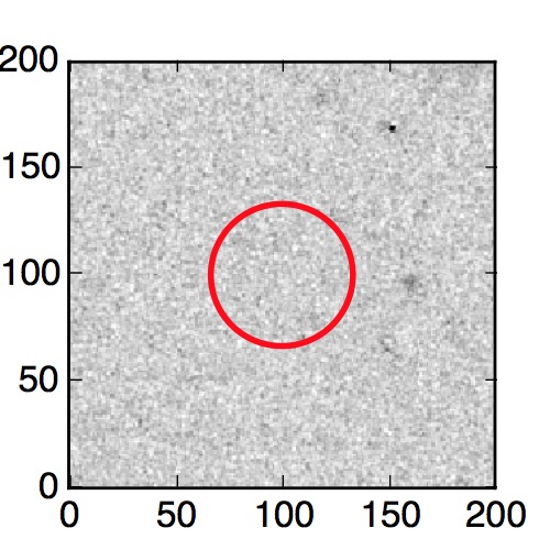 The red circle in the various panels is 1" in radius. The images are 6"x6".