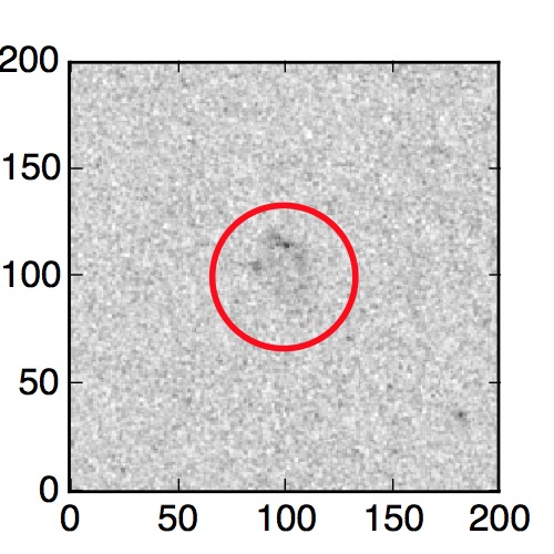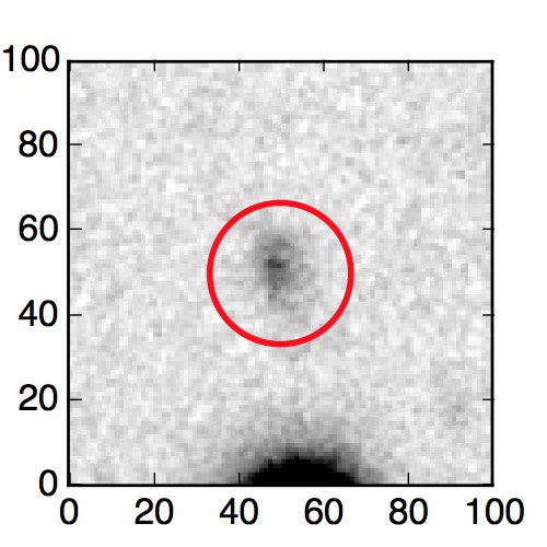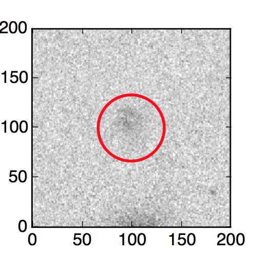 The red circle in the various panels is 1" in radius. The images are 6"x6".
