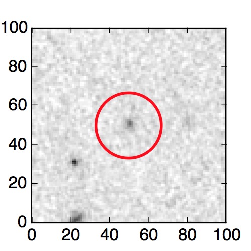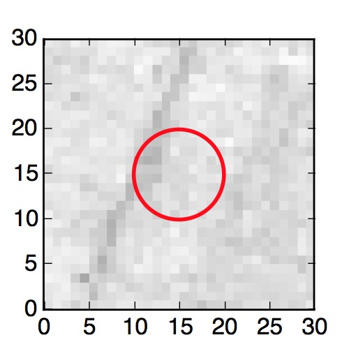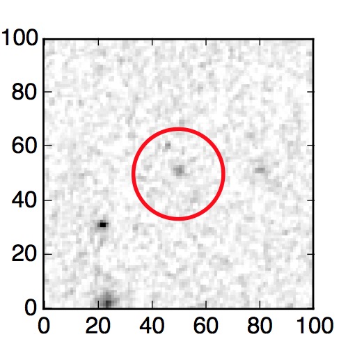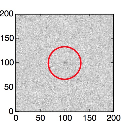 The red circle in the various panels is 1" in radius. The images are 6"x6".