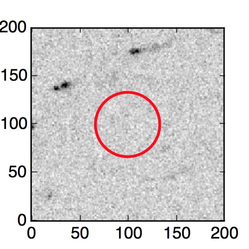 The red circle in the various panels is 1" in radius. The images are 6"x6".