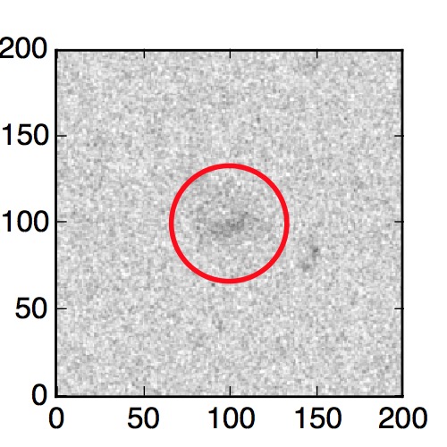 The red circle in the various panels is 1" in radius. The images are 6"x6".