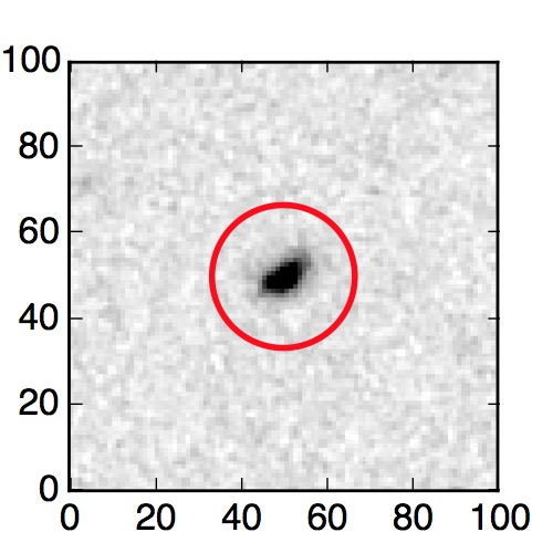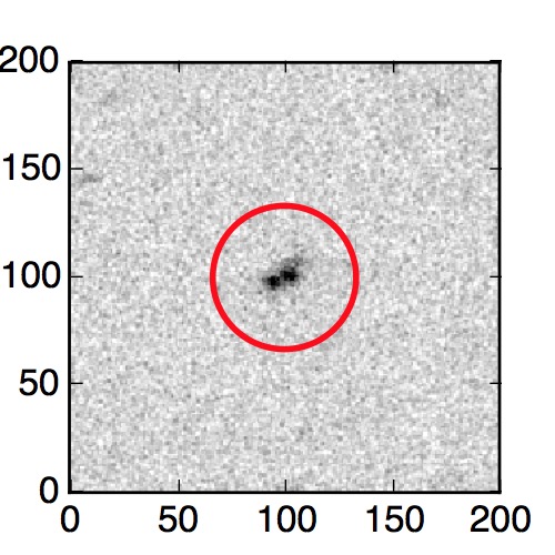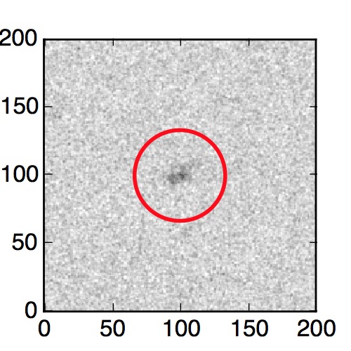 The red circle in the various panels is 1" in radius. The images are 6"x6".