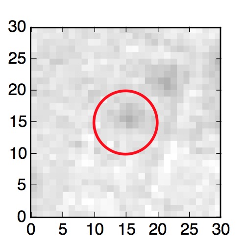 The red circle in the various panels is 1" in radius. The images are 6"x6".