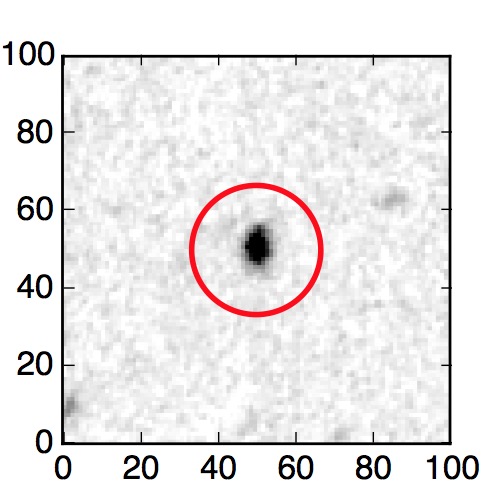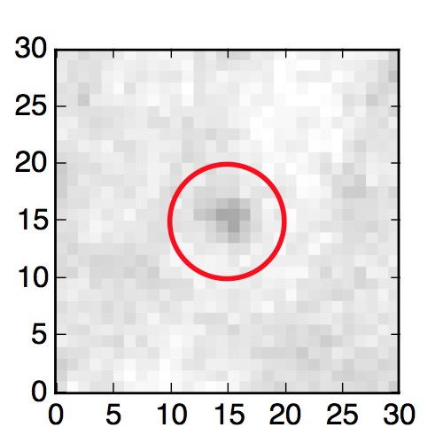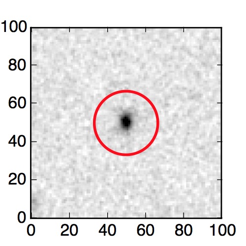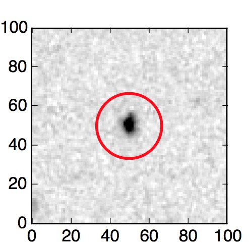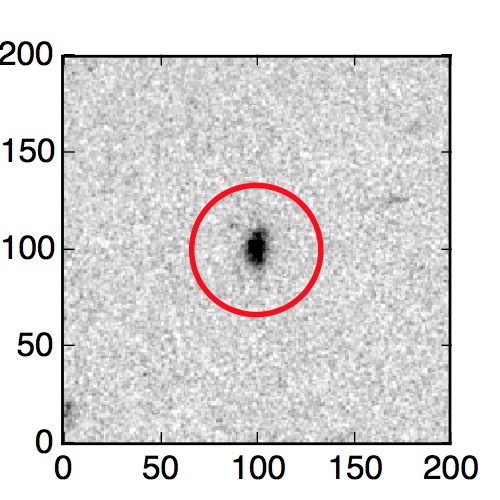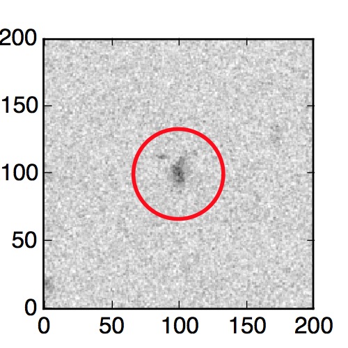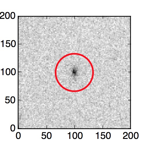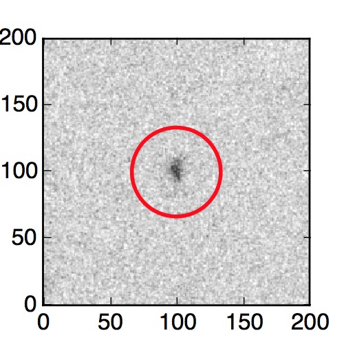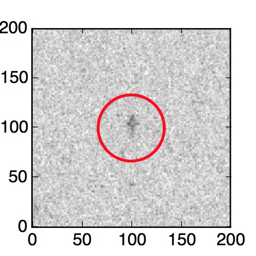 The red circle in the various panels is 1" in radius. The images are 6"x6".
