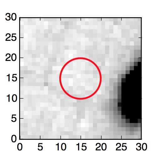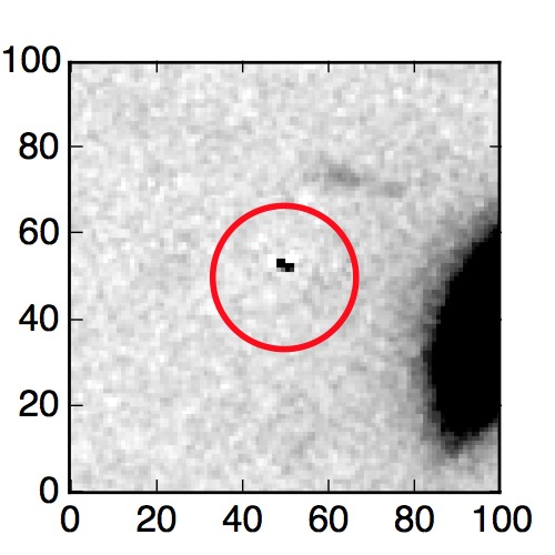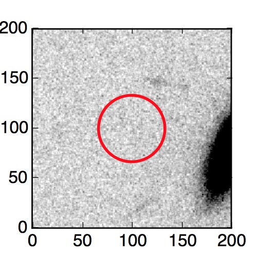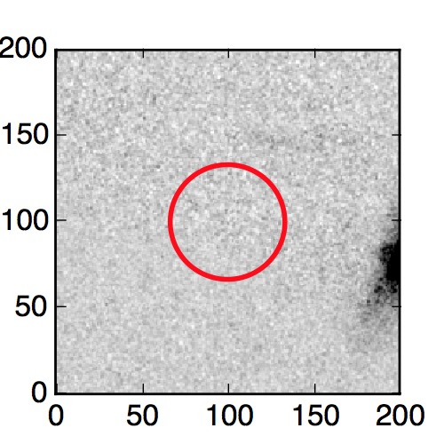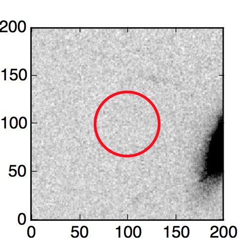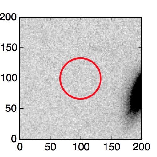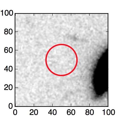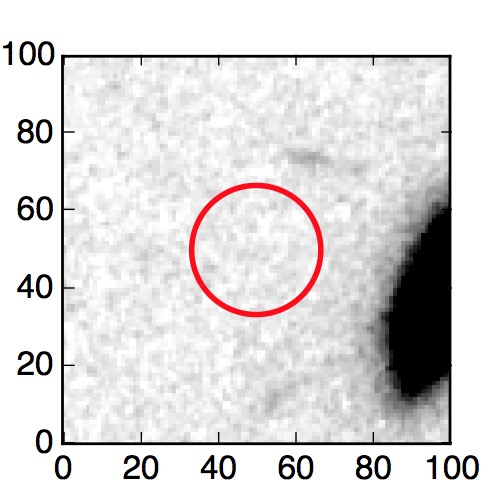 The red circle in the various panels is 1" in radius. The images are 6"x6".