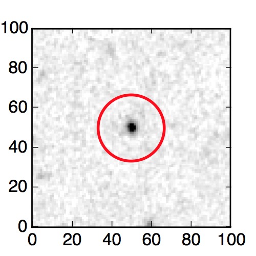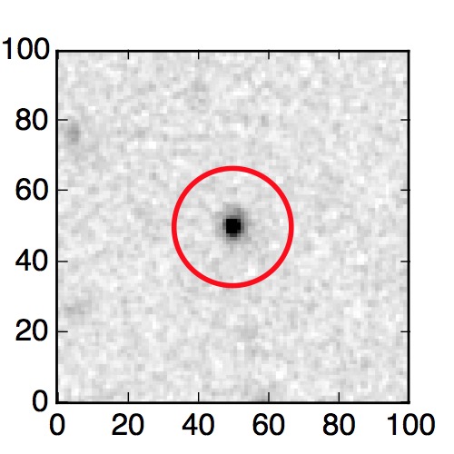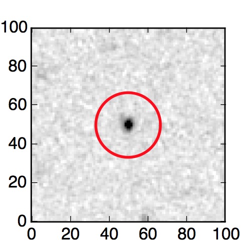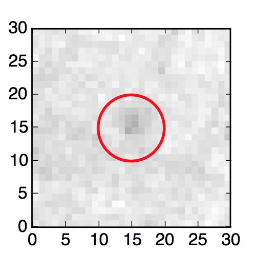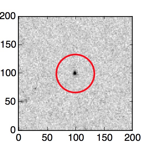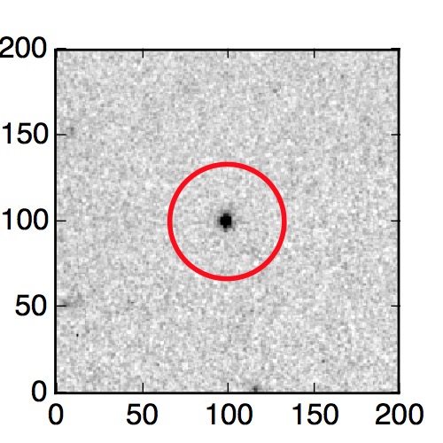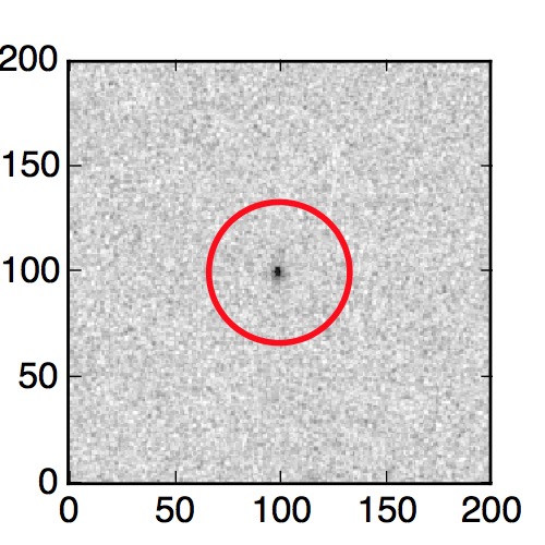 The red circle in the various panels is 1" in radius. The images are 6"x6".
