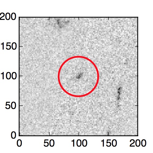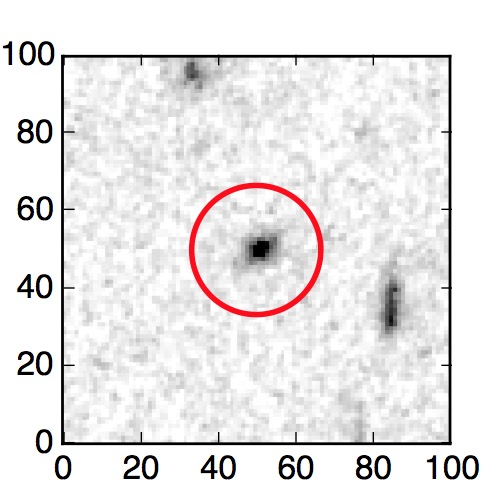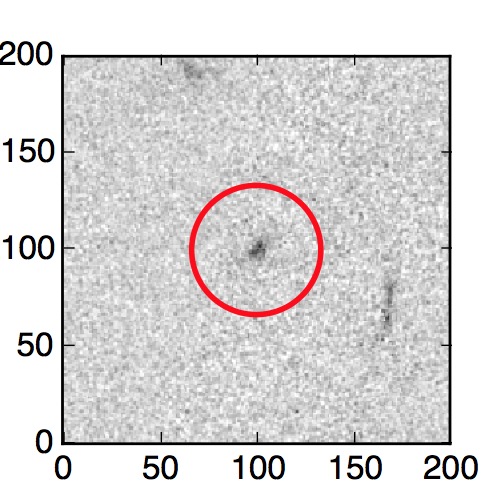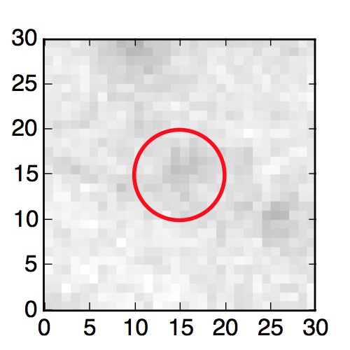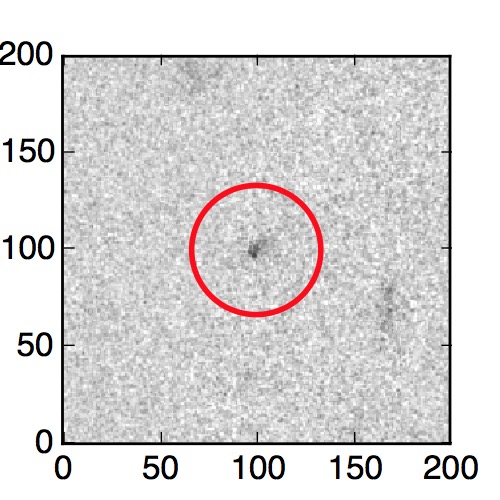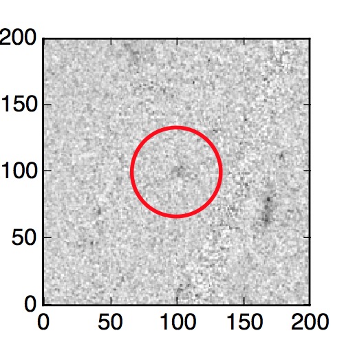 The red circle in the various panels is 1" in radius. The images are 6"x6".