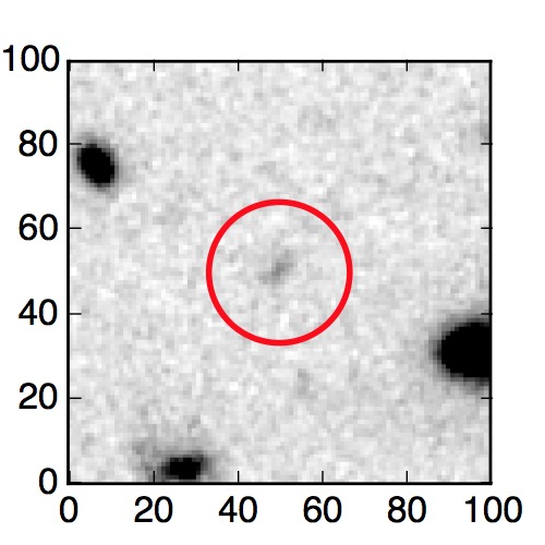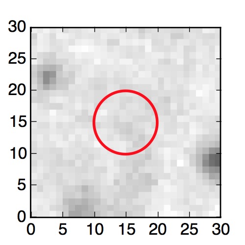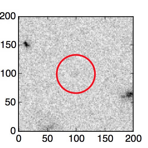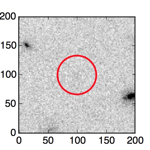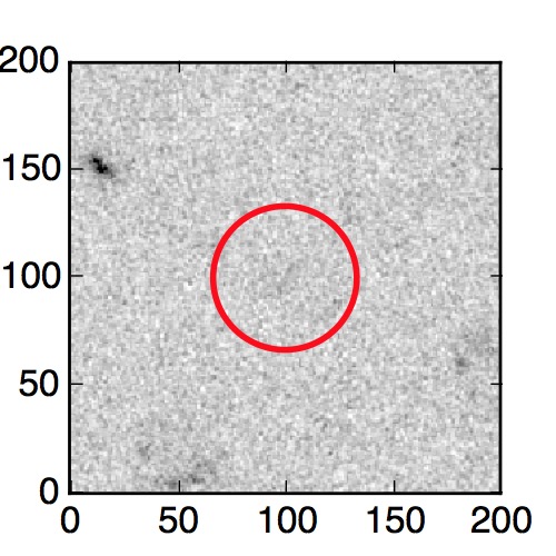 The red circle in the various panels is 1" in radius. The images are 6"x6".