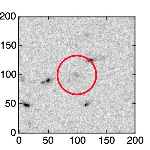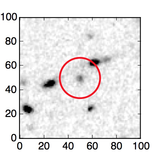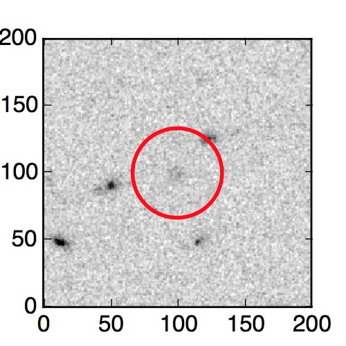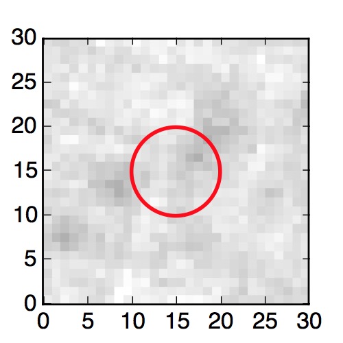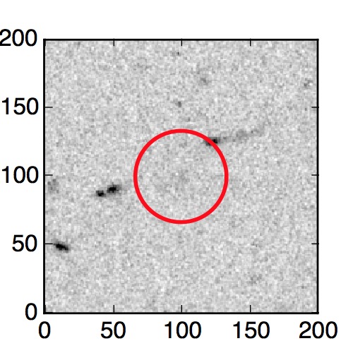 The red circle in the various panels is 1" in radius. The images are 6"x6".