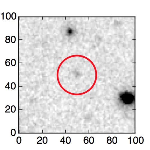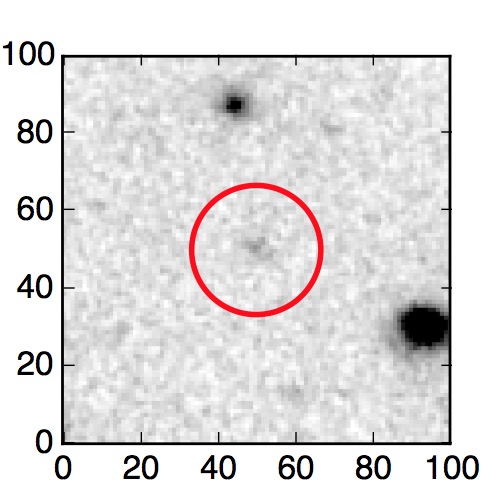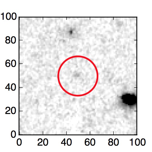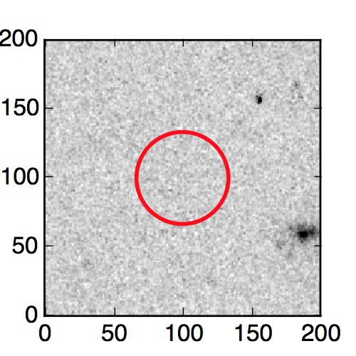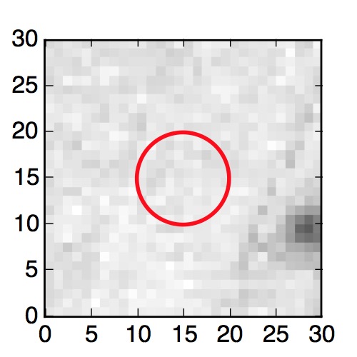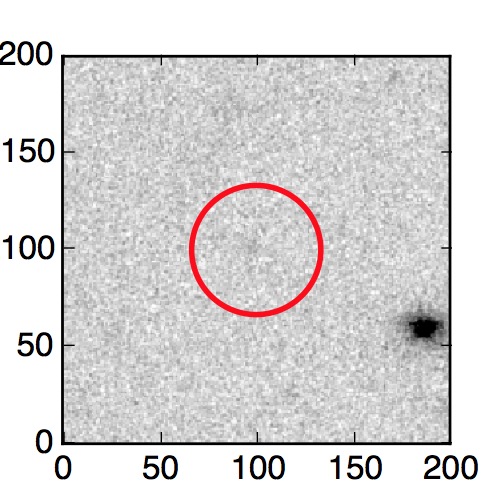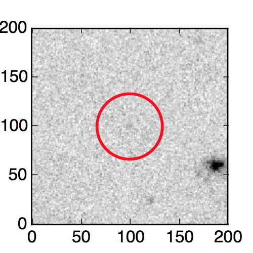 The red circle in the various panels is 1" in radius. The images are 6"x6".