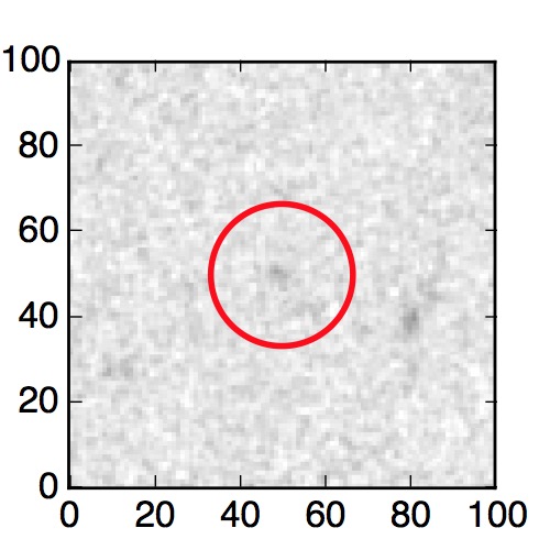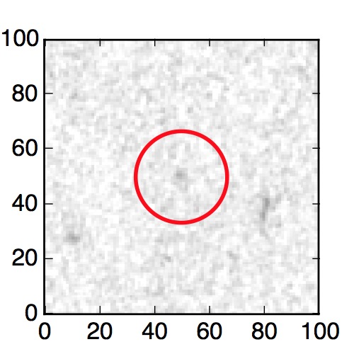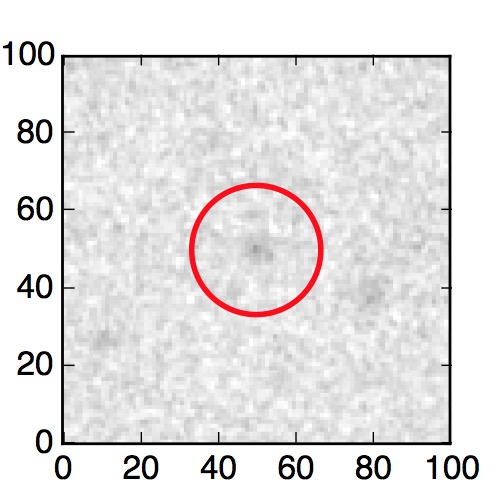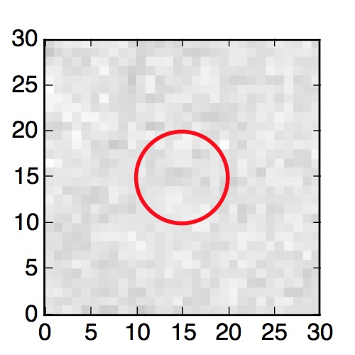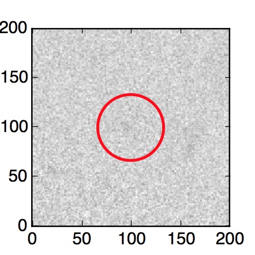 The red circle in the various panels is 1" in radius. The images are 6"x6".
