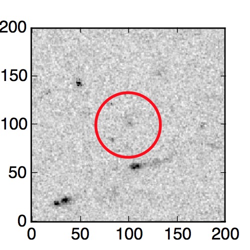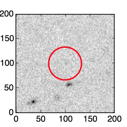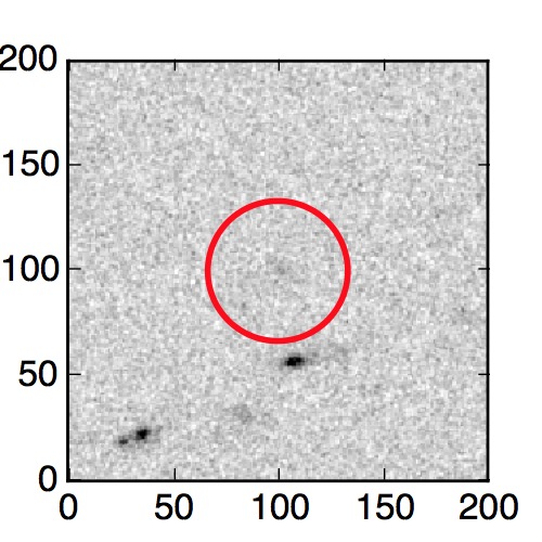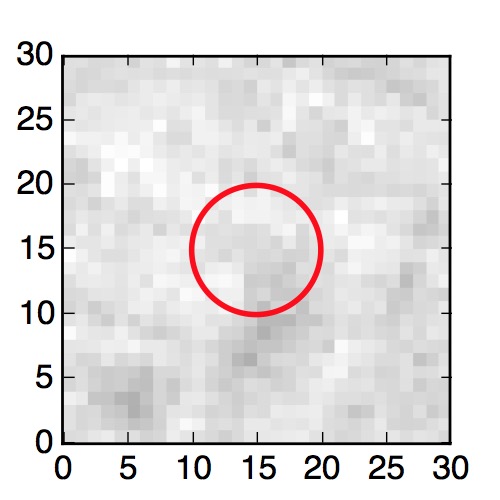 The red circle in the various panels is 1" in radius. The images are 6"x6".