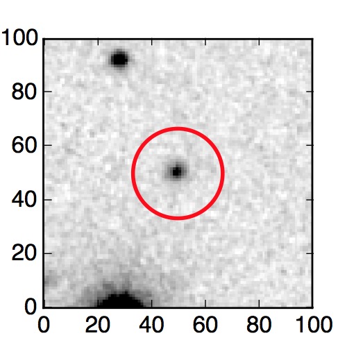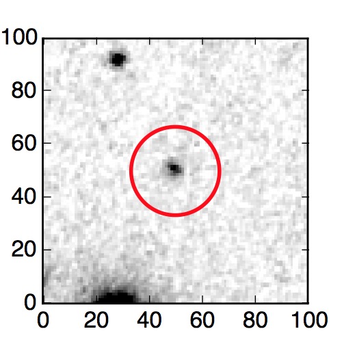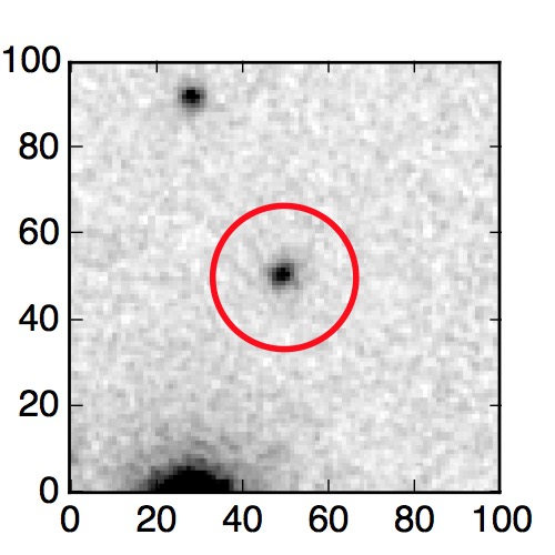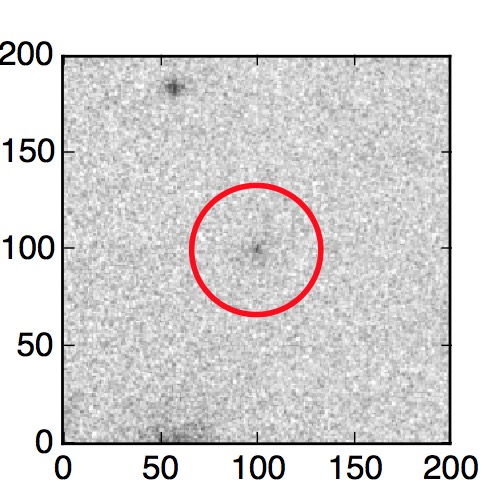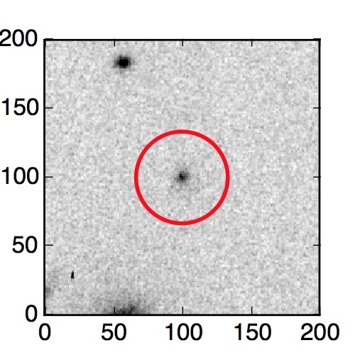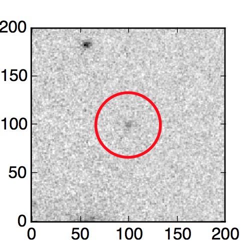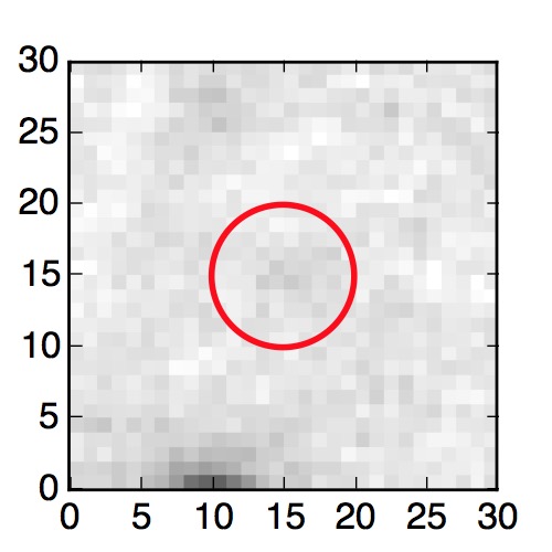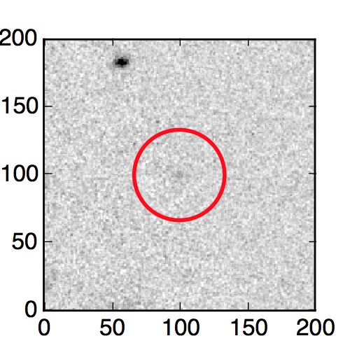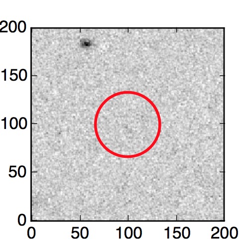 The red circle in the various panels is 1" in radius. The images are 6"x6".