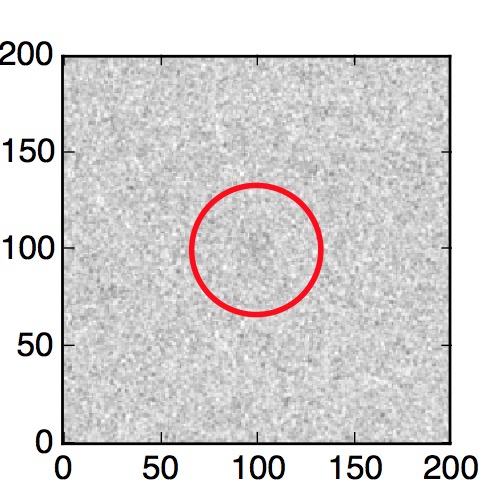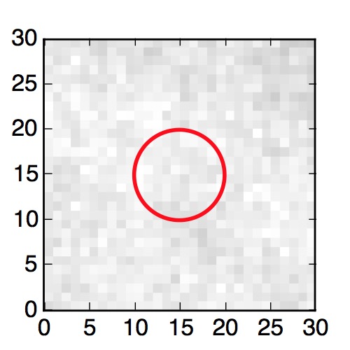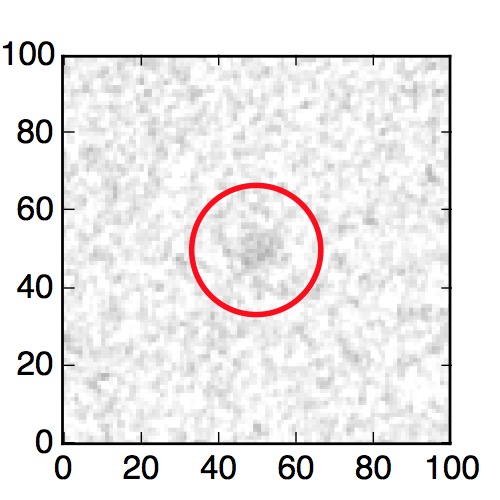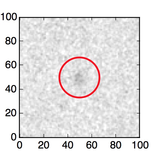 The red circle in the various panels is 1" in radius. The images are 6"x6".