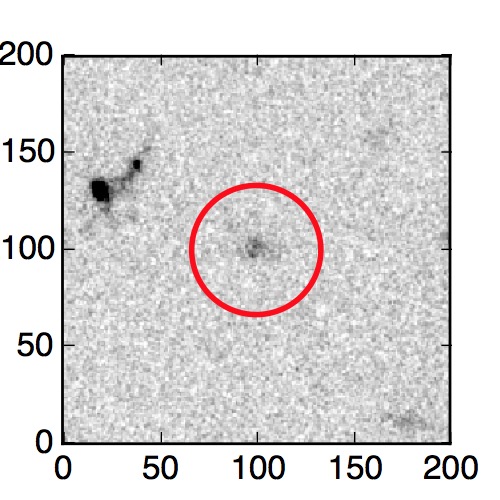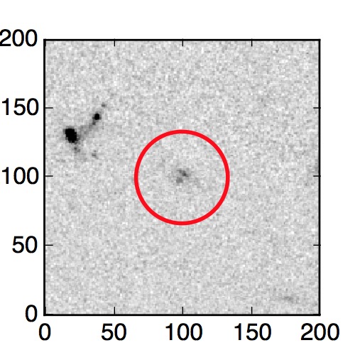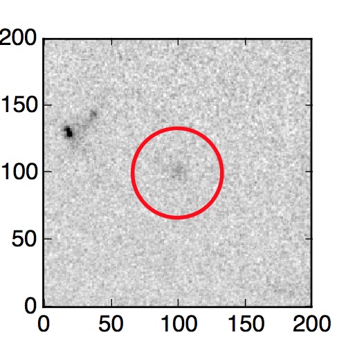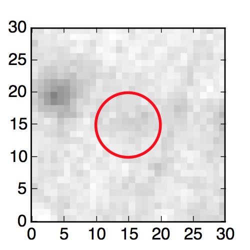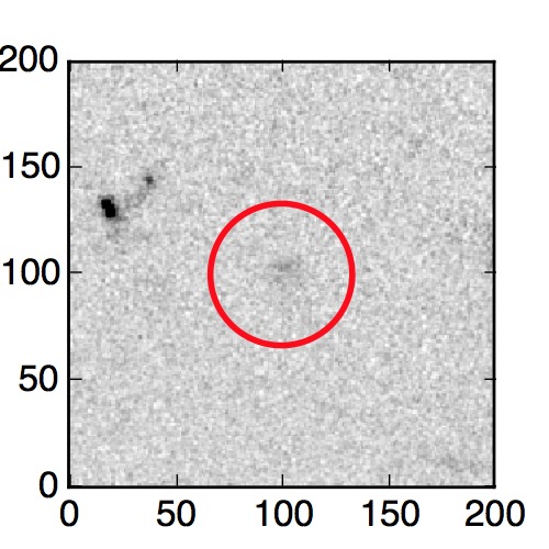 The red circle in the various panels is 1" in radius. The images are 6"x6".