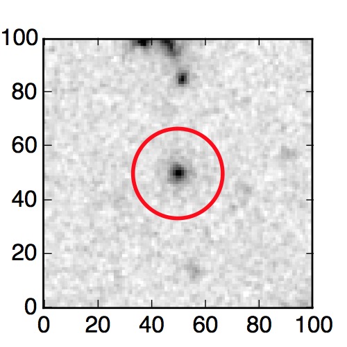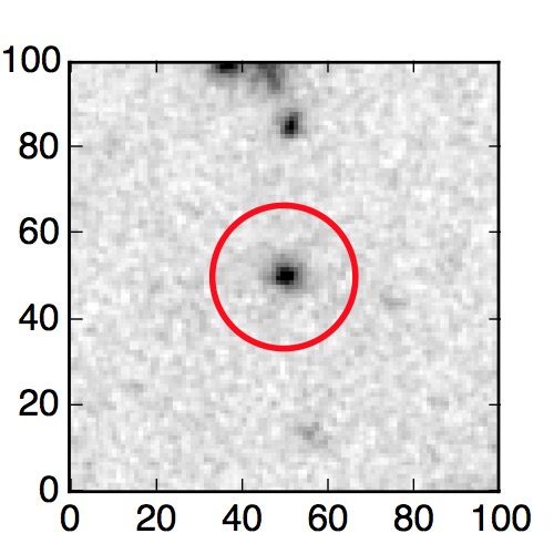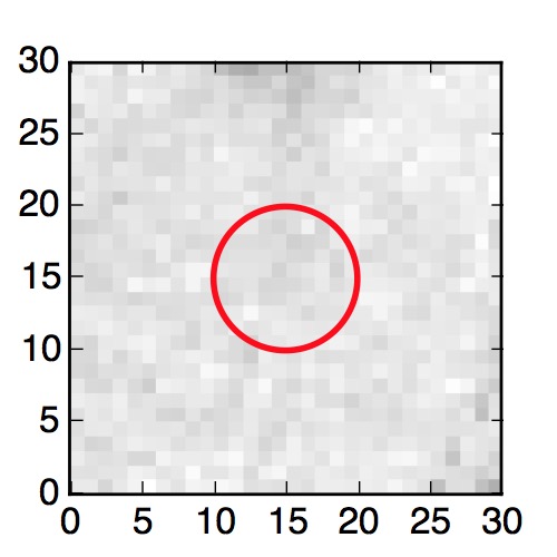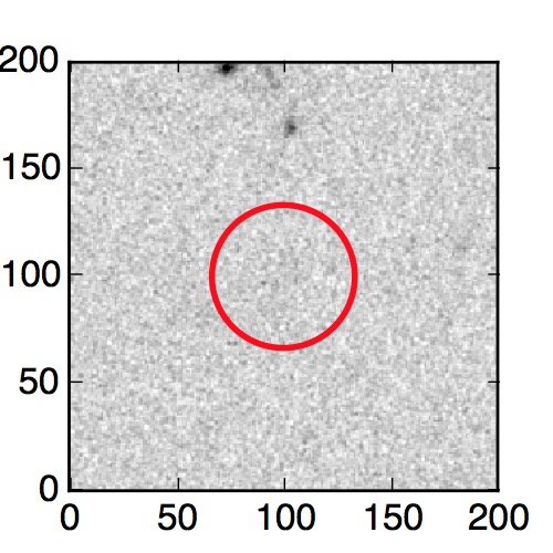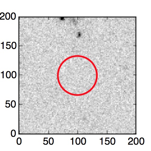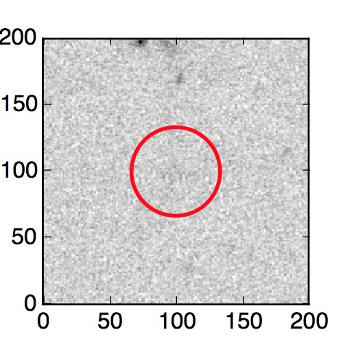 The red circle in the various panels is 1" in radius. The images are 6"x6".