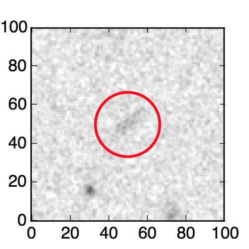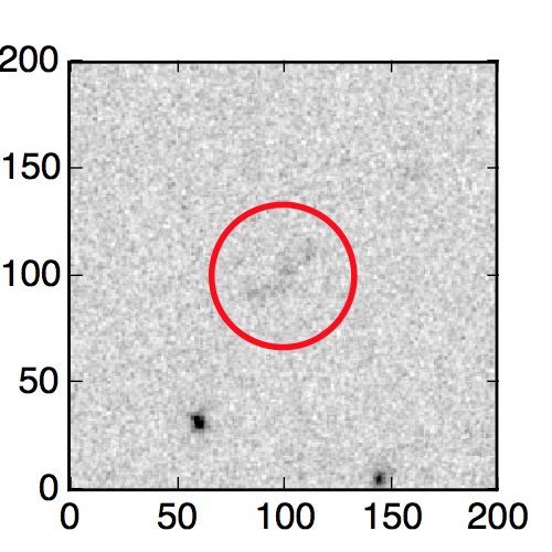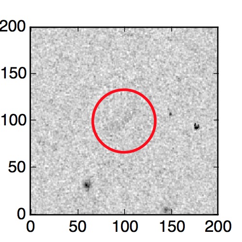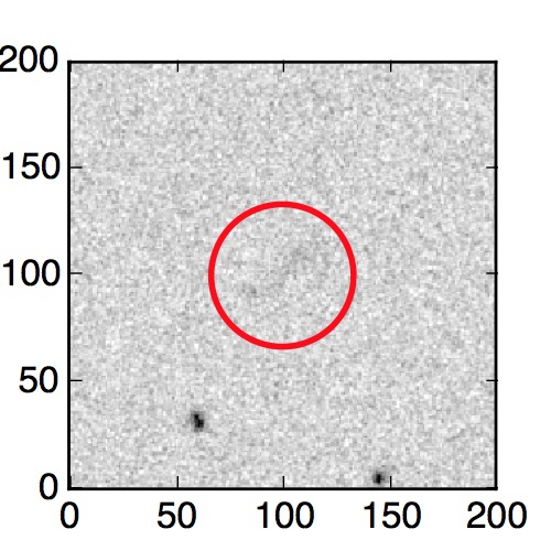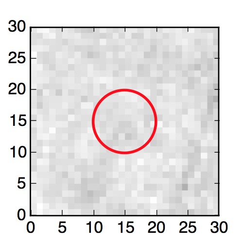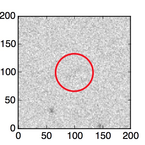 The red circle in the various panels is 1" in radius. The images are 6"x6".