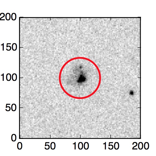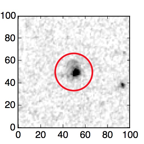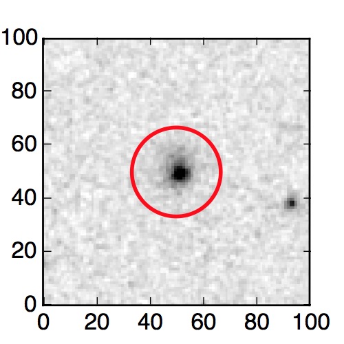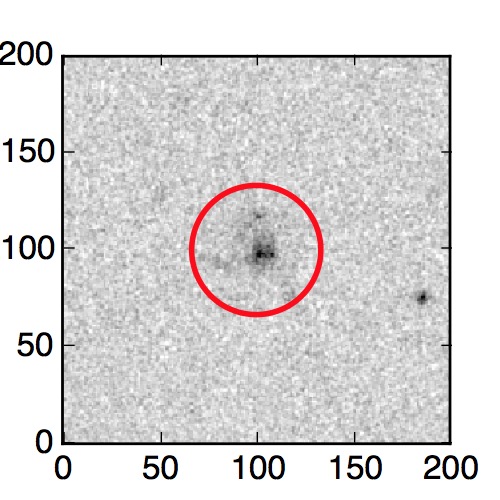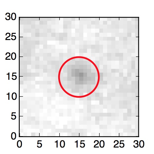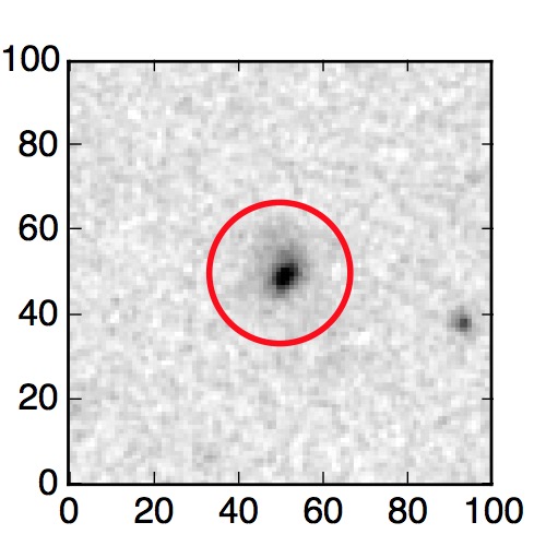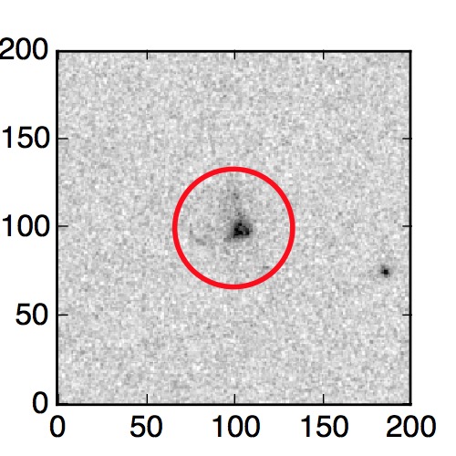 The red circle in the various panels is 1" in radius. The images are 6"x6".