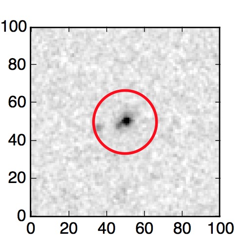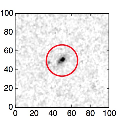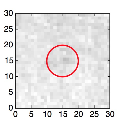 The red circle in the various panels is 1" in radius. The images are 6"x6".