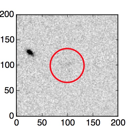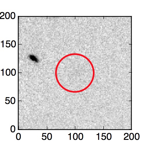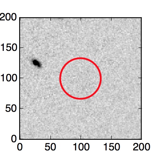 The red circle in the various panels is 1" in radius. The images are 6"x6".