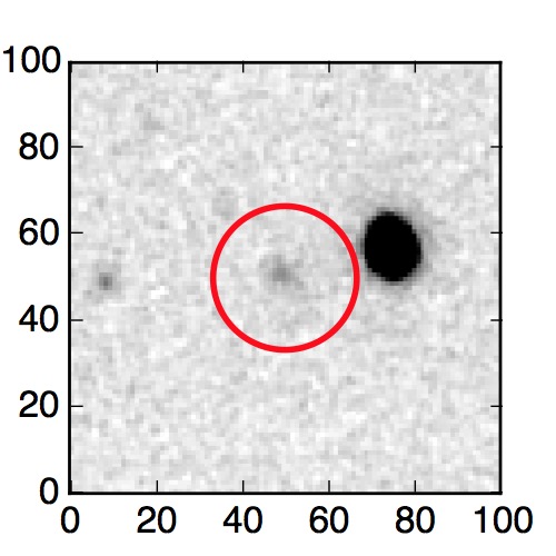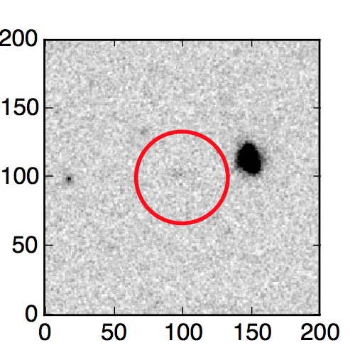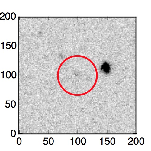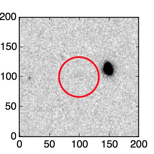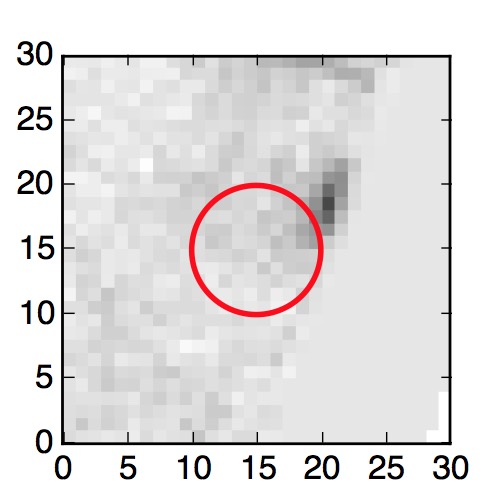 The red circle in the various panels is 1" in radius. The images are 6"x6".