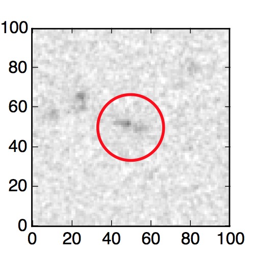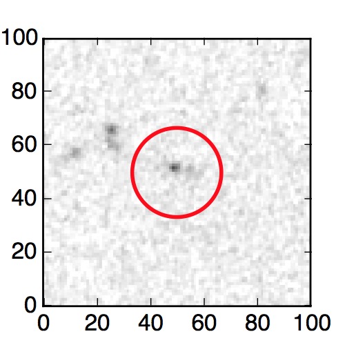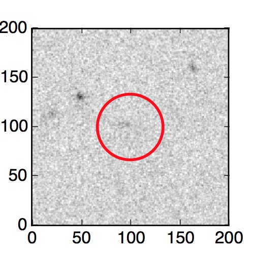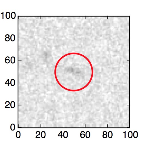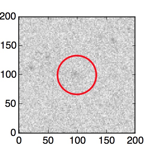 The red circle in the various panels is 1" in radius. The images are 6"x6".