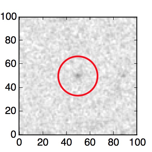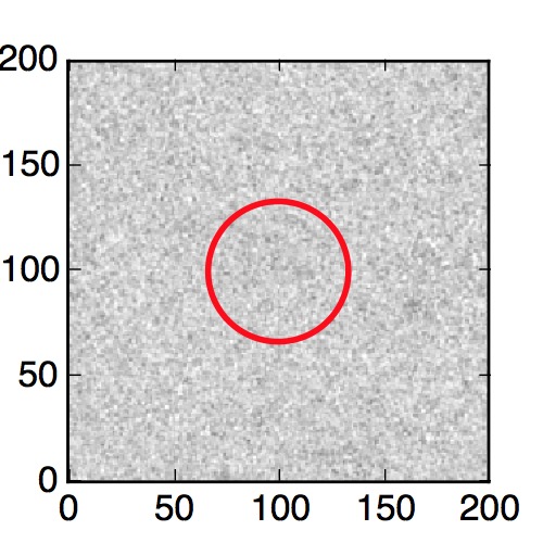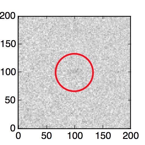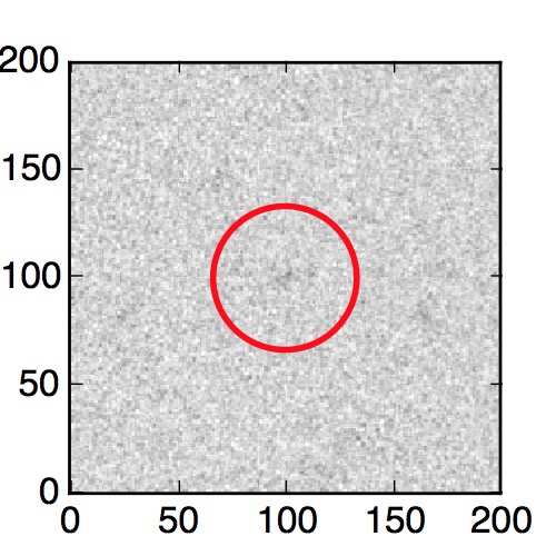 The red circle in the various panels is 1" in radius. The images are 6"x6".