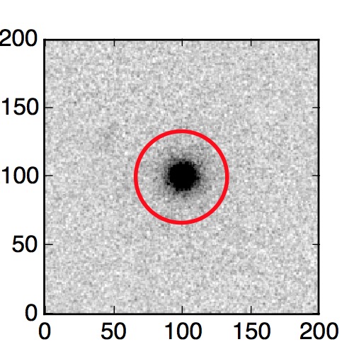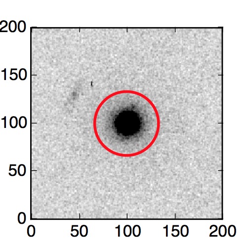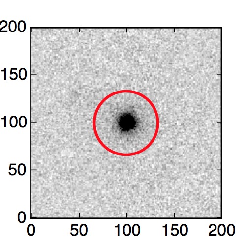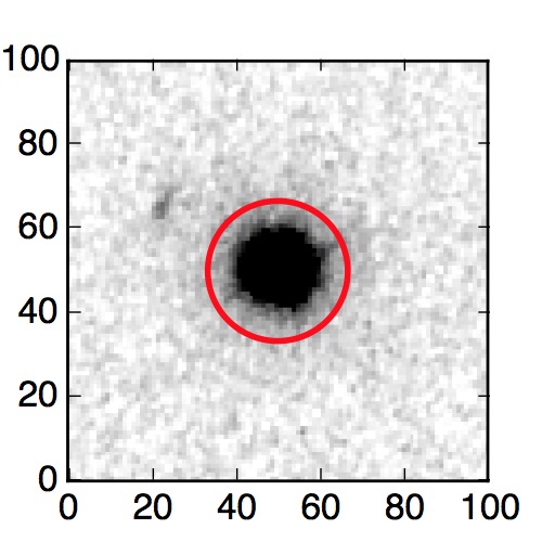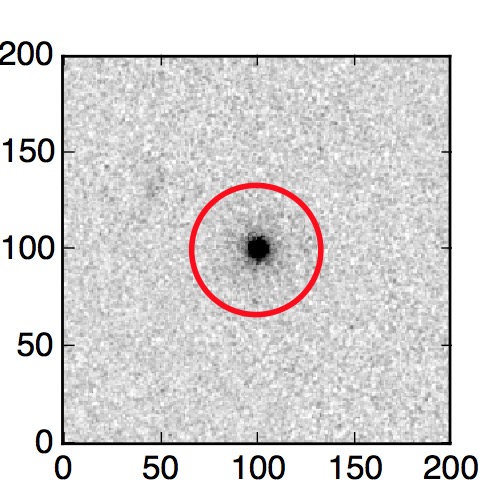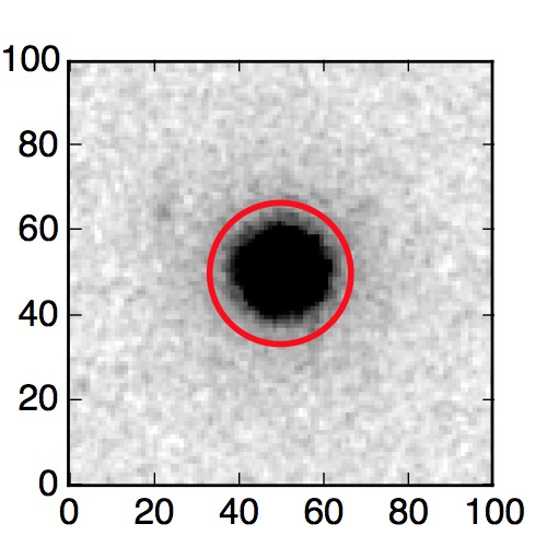 The red circle in the various panels is 1" in radius. The images are 6"x6".