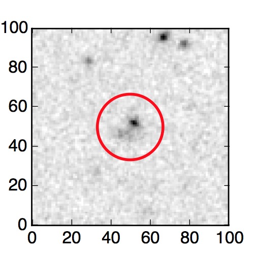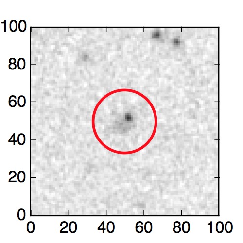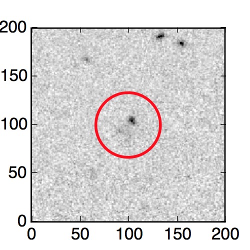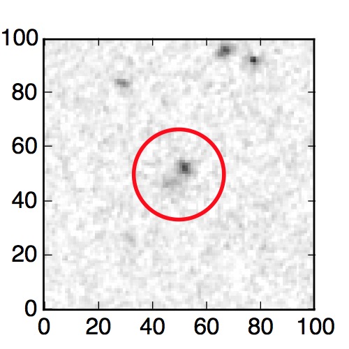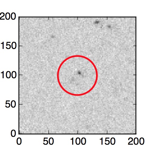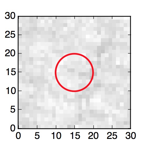 The red circle in the various panels is 1" in radius. The images are 6"x6".