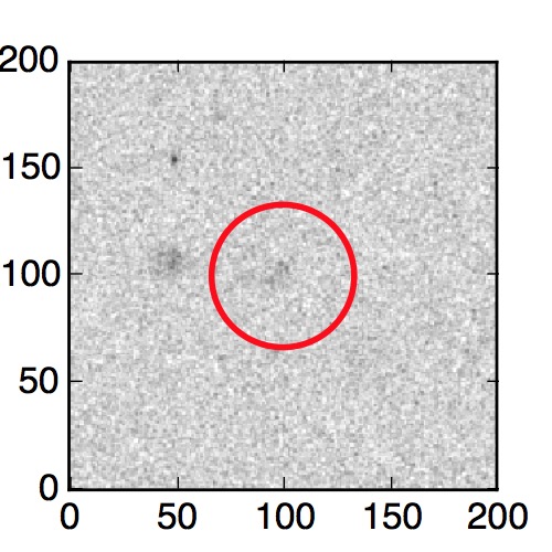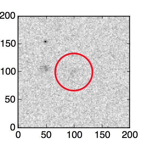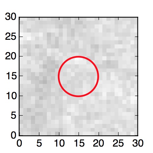 The red circle in the various panels is 1" in radius. The images are 6"x6".