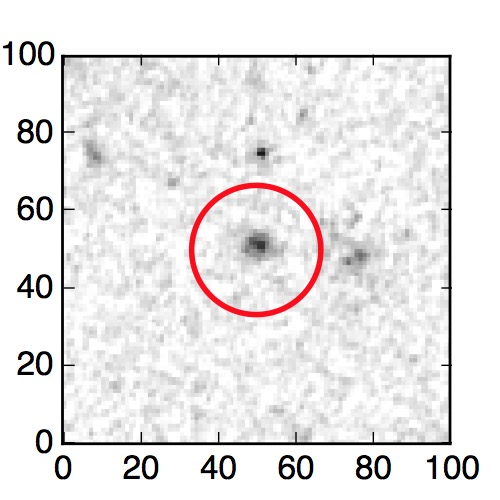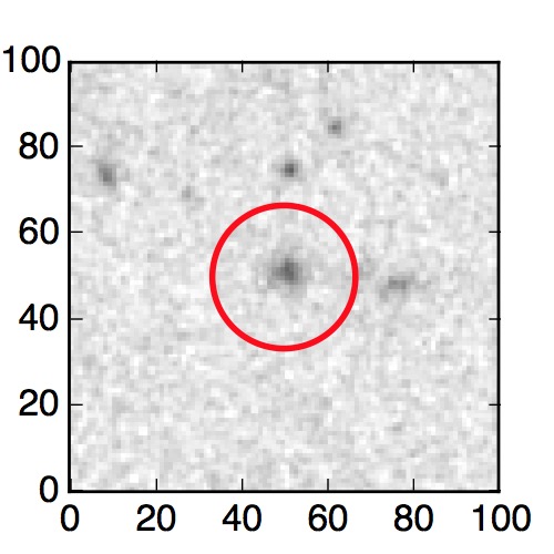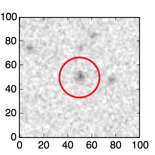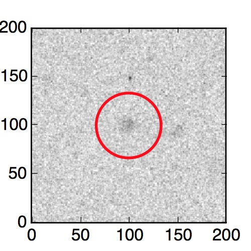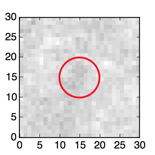 The red circle in the various panels is 1" in radius. The images are 6"x6".