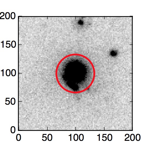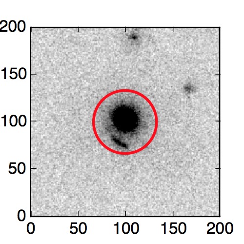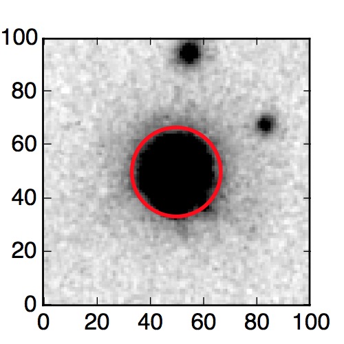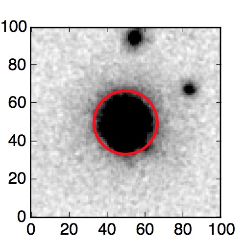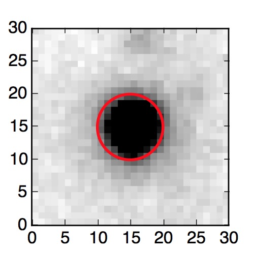 The red circle in the various panels is 1" in radius. The images are 6"x6".
