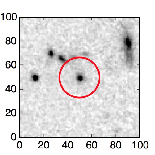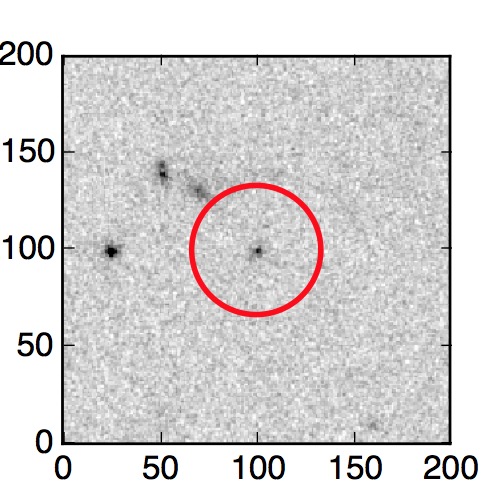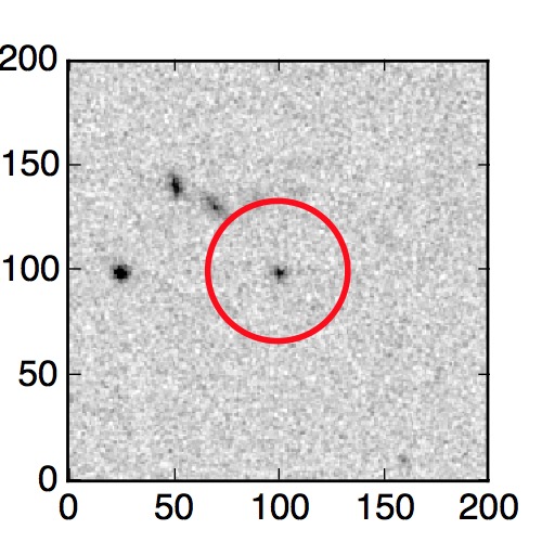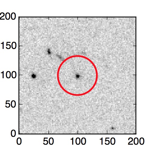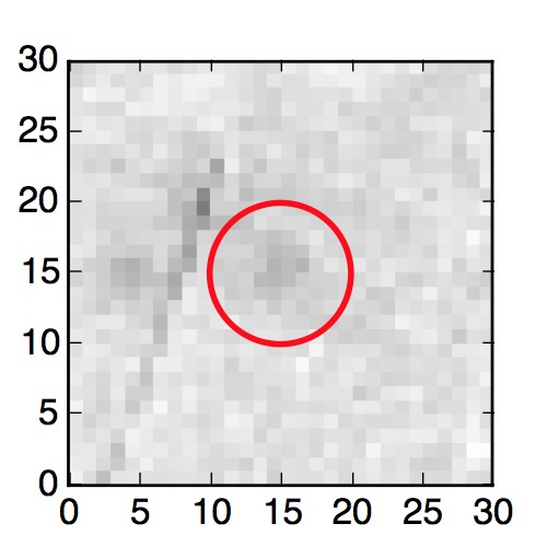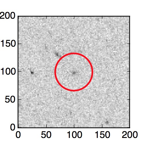 The red circle in the various panels is 1" in radius. The images are 6"x6".