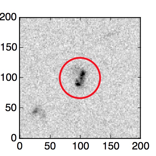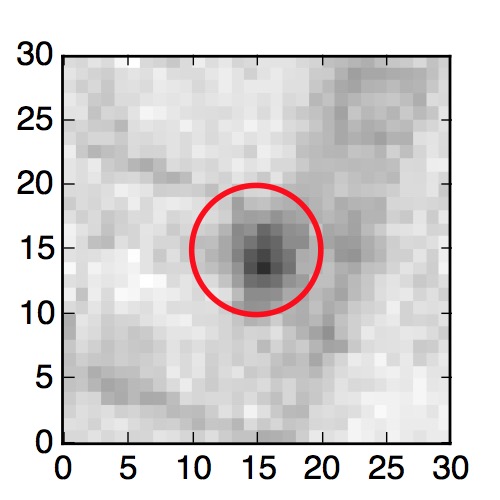 The red circle in the various panels is 1" in radius. The images are 6"x6".