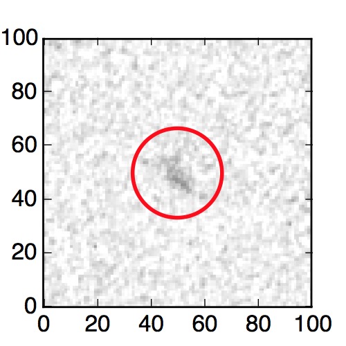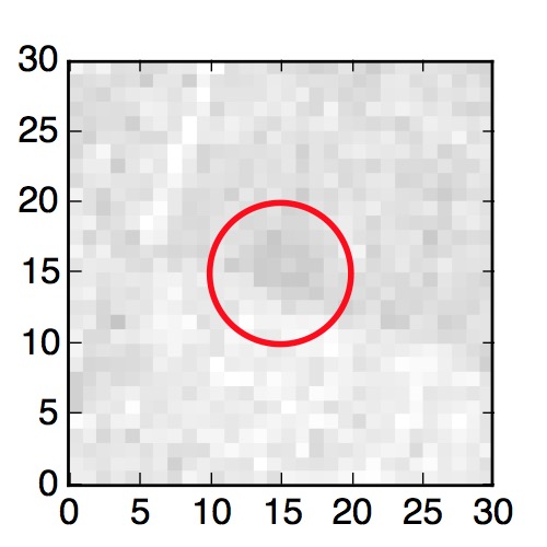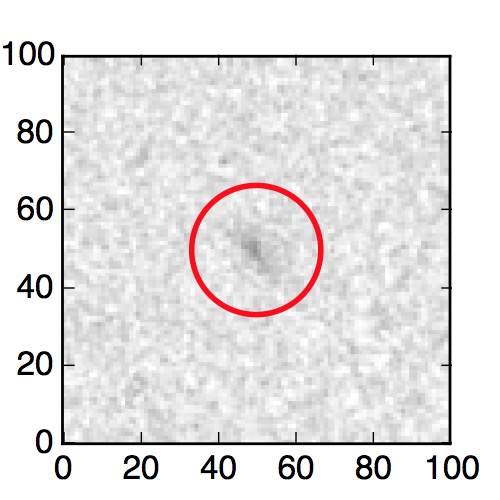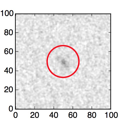 The red circle in the various panels is 1" in radius. The images are 6"x6".