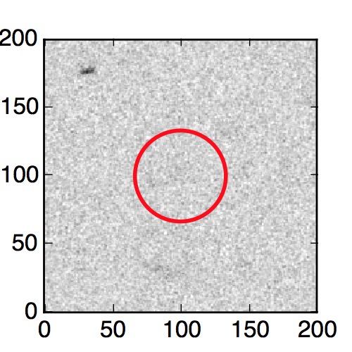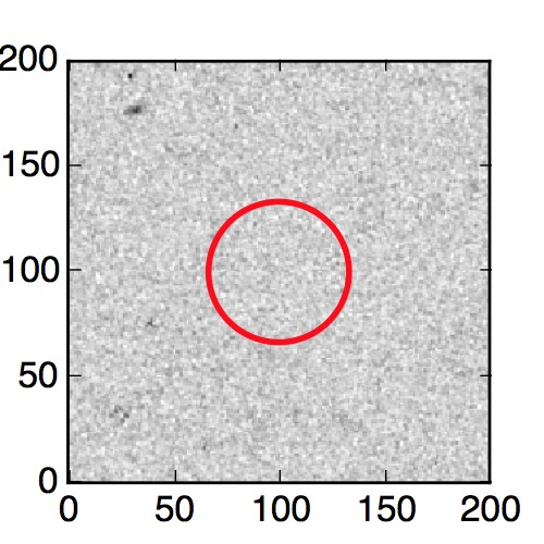 The red circle in the various panels is 1" in radius. The images are 6"x6".