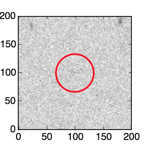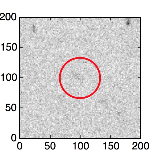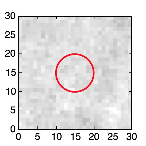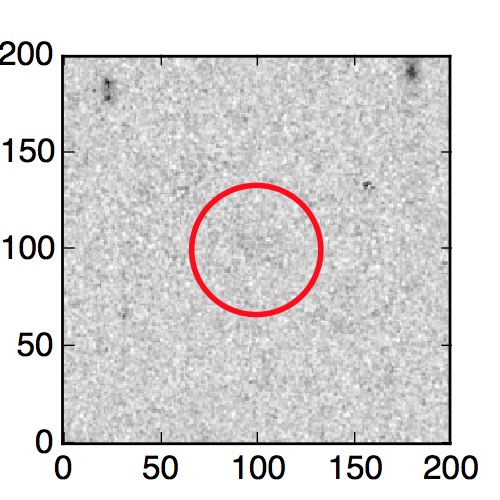 The red circle in the various panels is 1" in radius. The images are 6"x6".