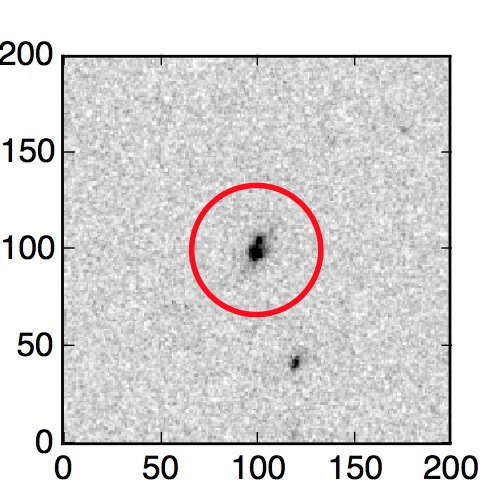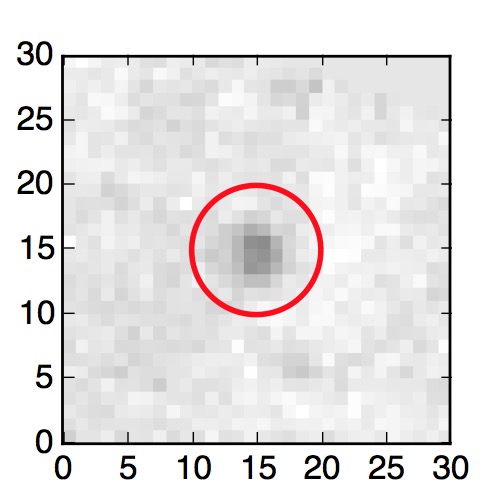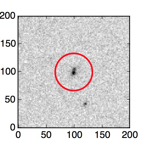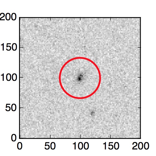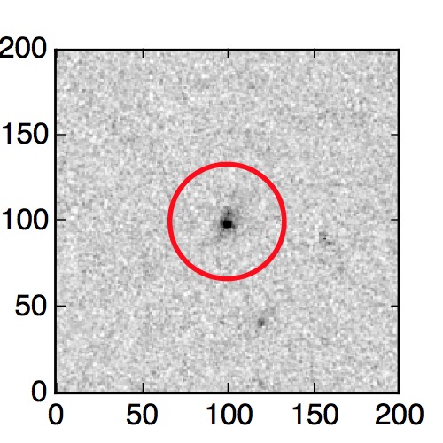 The red circle in the various panels is 1" in radius. The images are 6"x6".