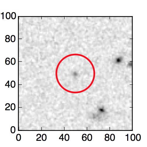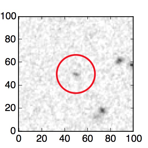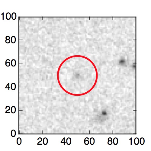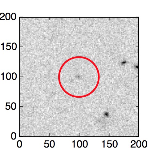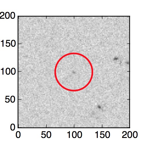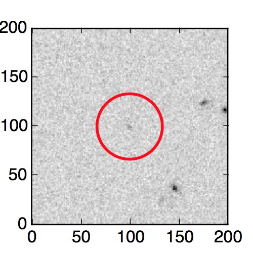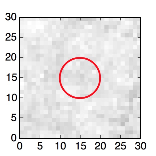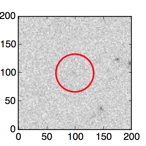 The red circle in the various panels is 1" in radius. The images are 6"x6".