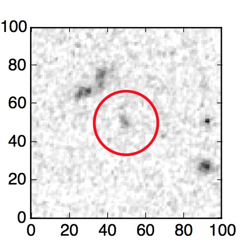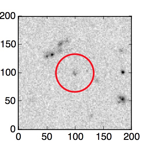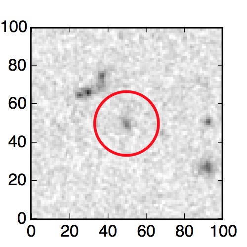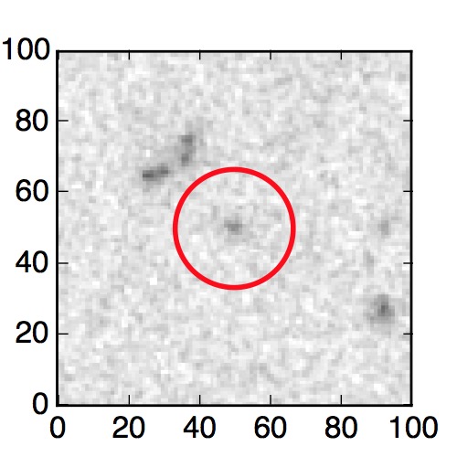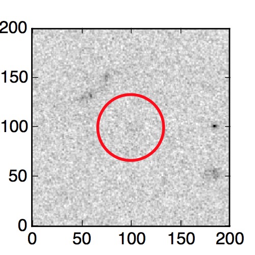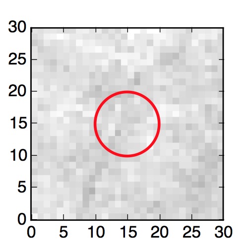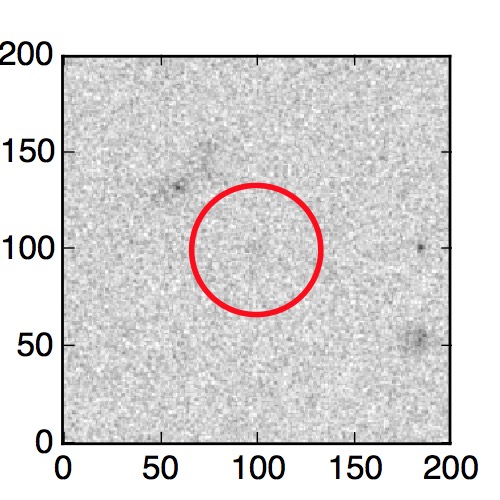 The red circle in the various panels is 1" in radius. The images are 6"x6".