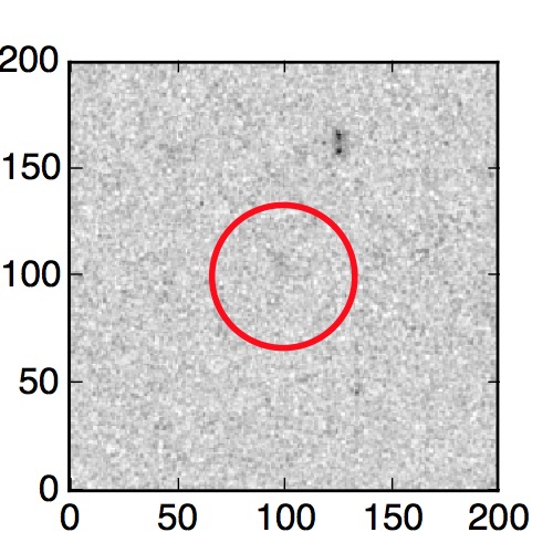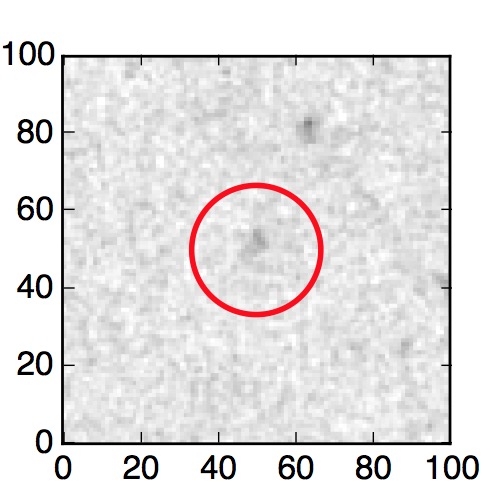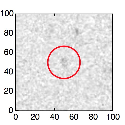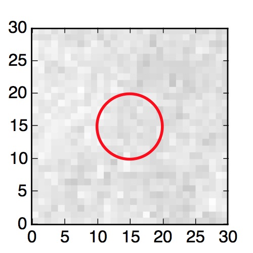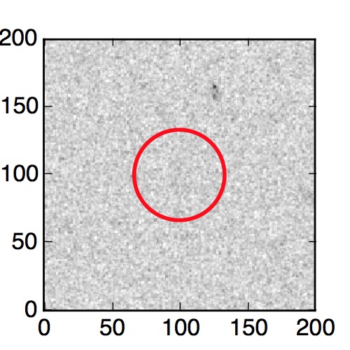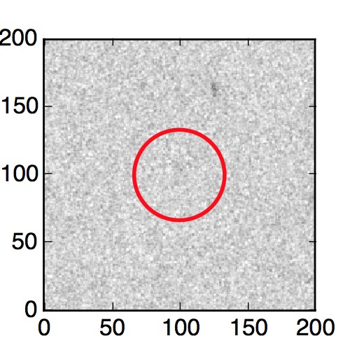 The red circle in the various panels is 1" in radius. The images are 6"x6".