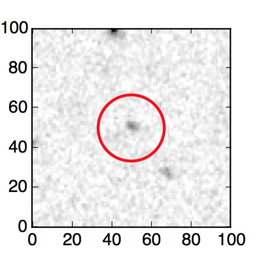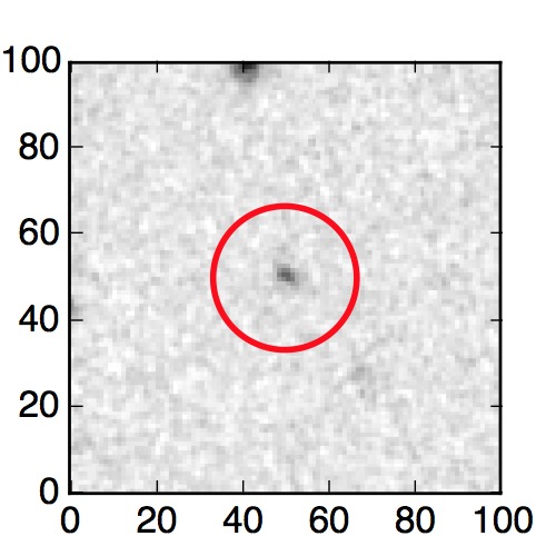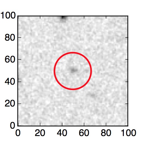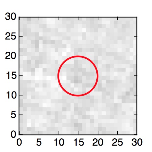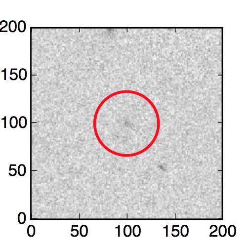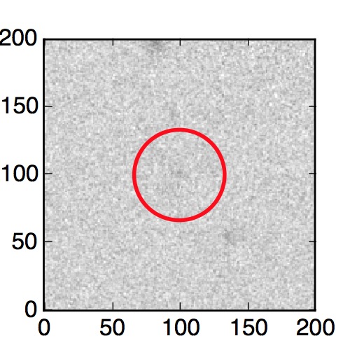 The red circle in the various panels is 1" in radius. The images are 6"x6".