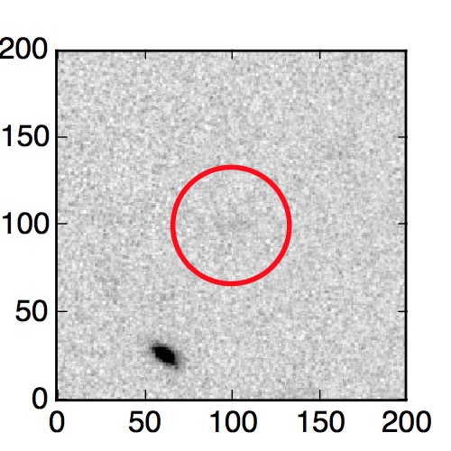 The red circle in the various panels is 1" in radius. The images are 6"x6".