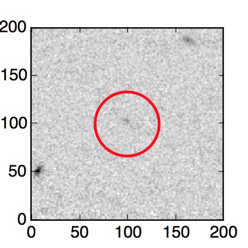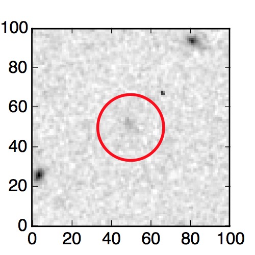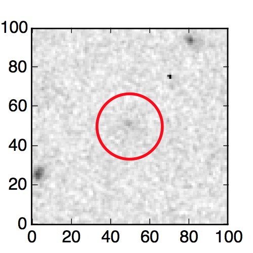 The red circle in the various panels is 1" in radius. The images are 6"x6".