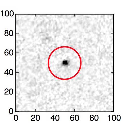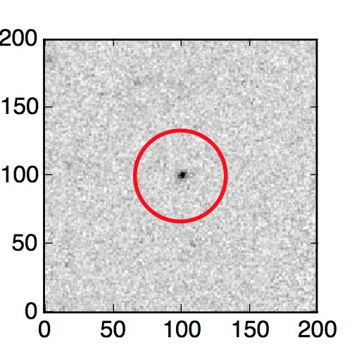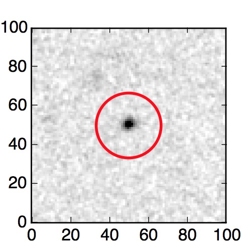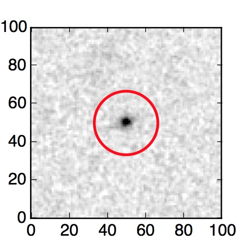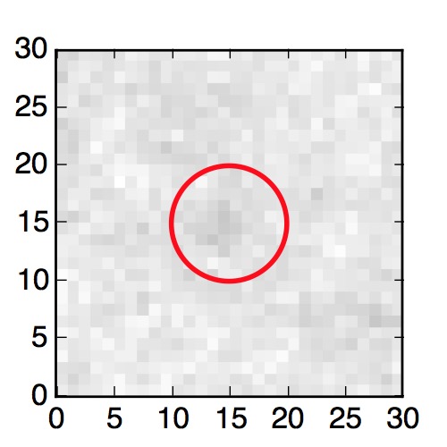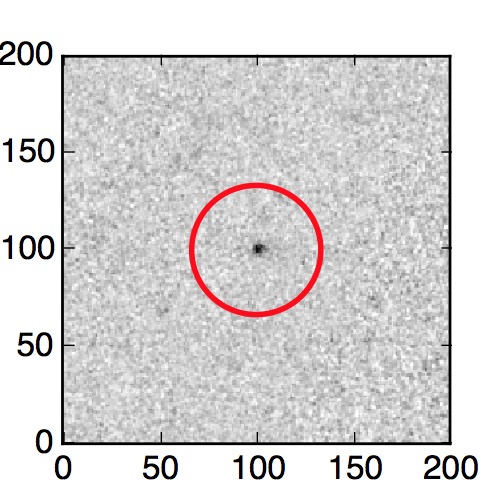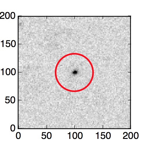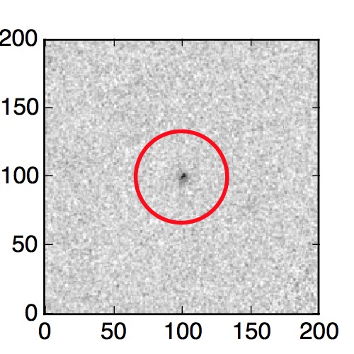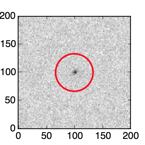 The red circle in the various panels is 1" in radius. The images are 6"x6".