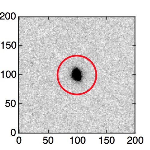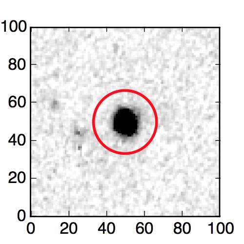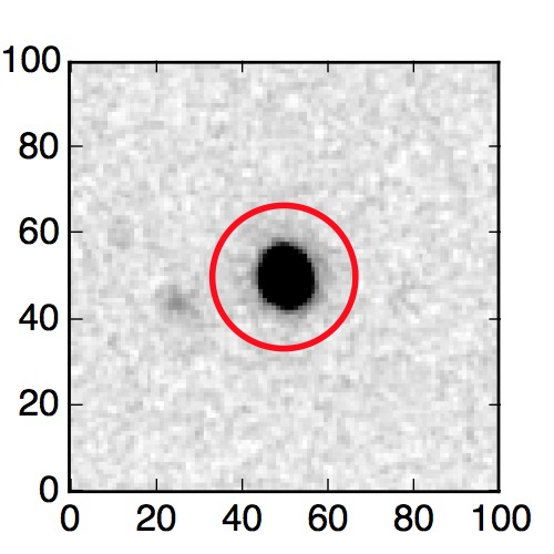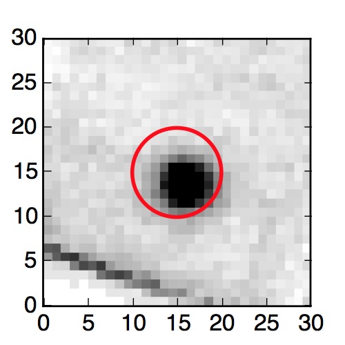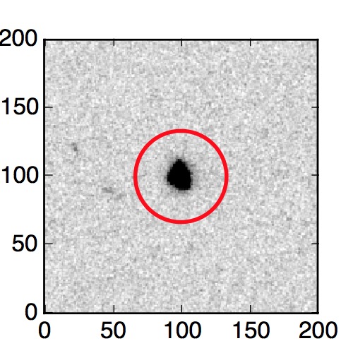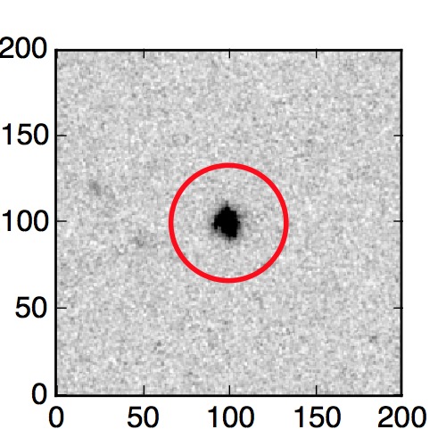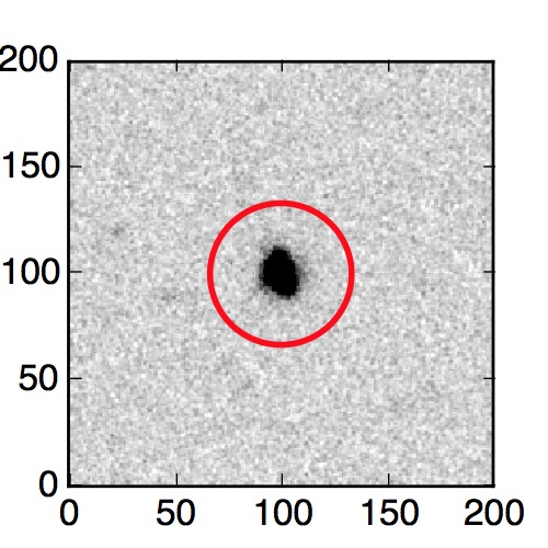 The red circle in the various panels is 1" in radius. The images are 6"x6".