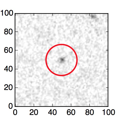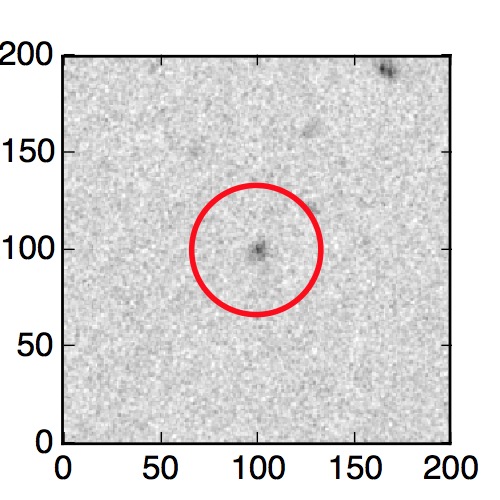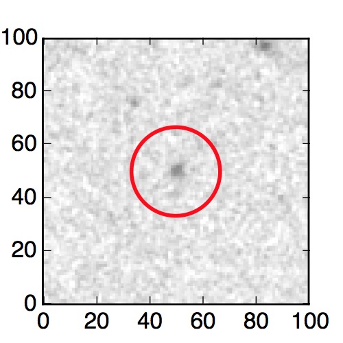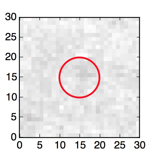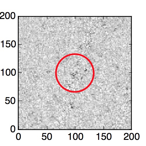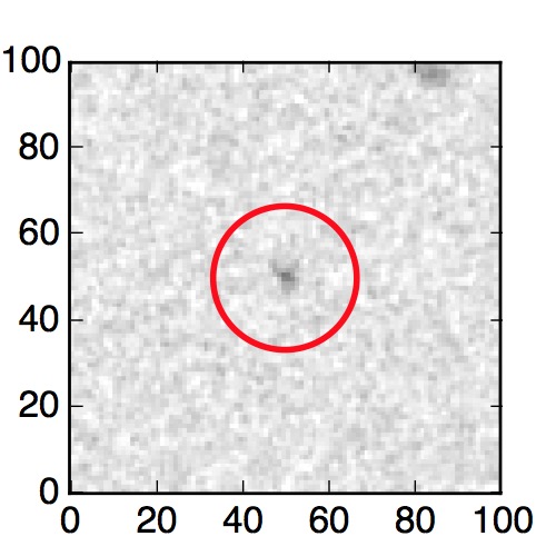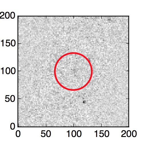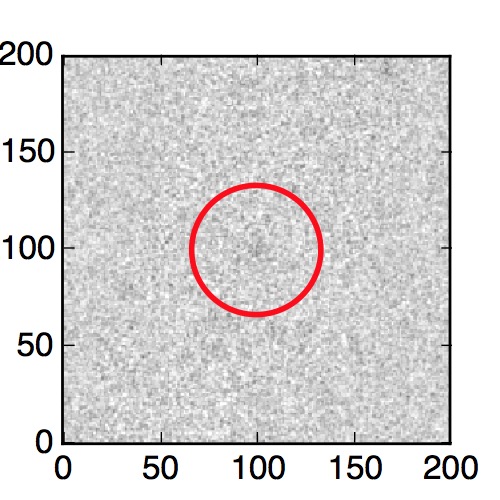 The red circle in the various panels is 1" in radius. The images are 6"x6".