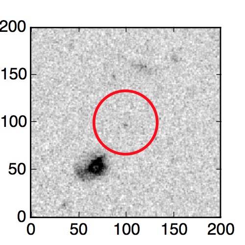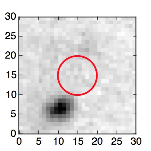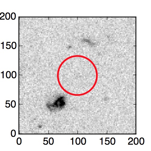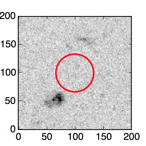 The red circle in the various panels is 1" in radius. The images are 6"x6".