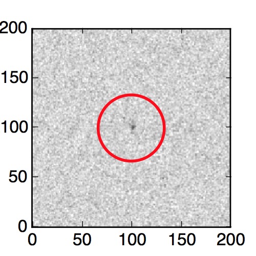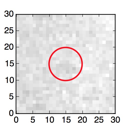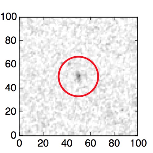 The red circle in the various panels is 1" in radius. The images are 6"x6".
